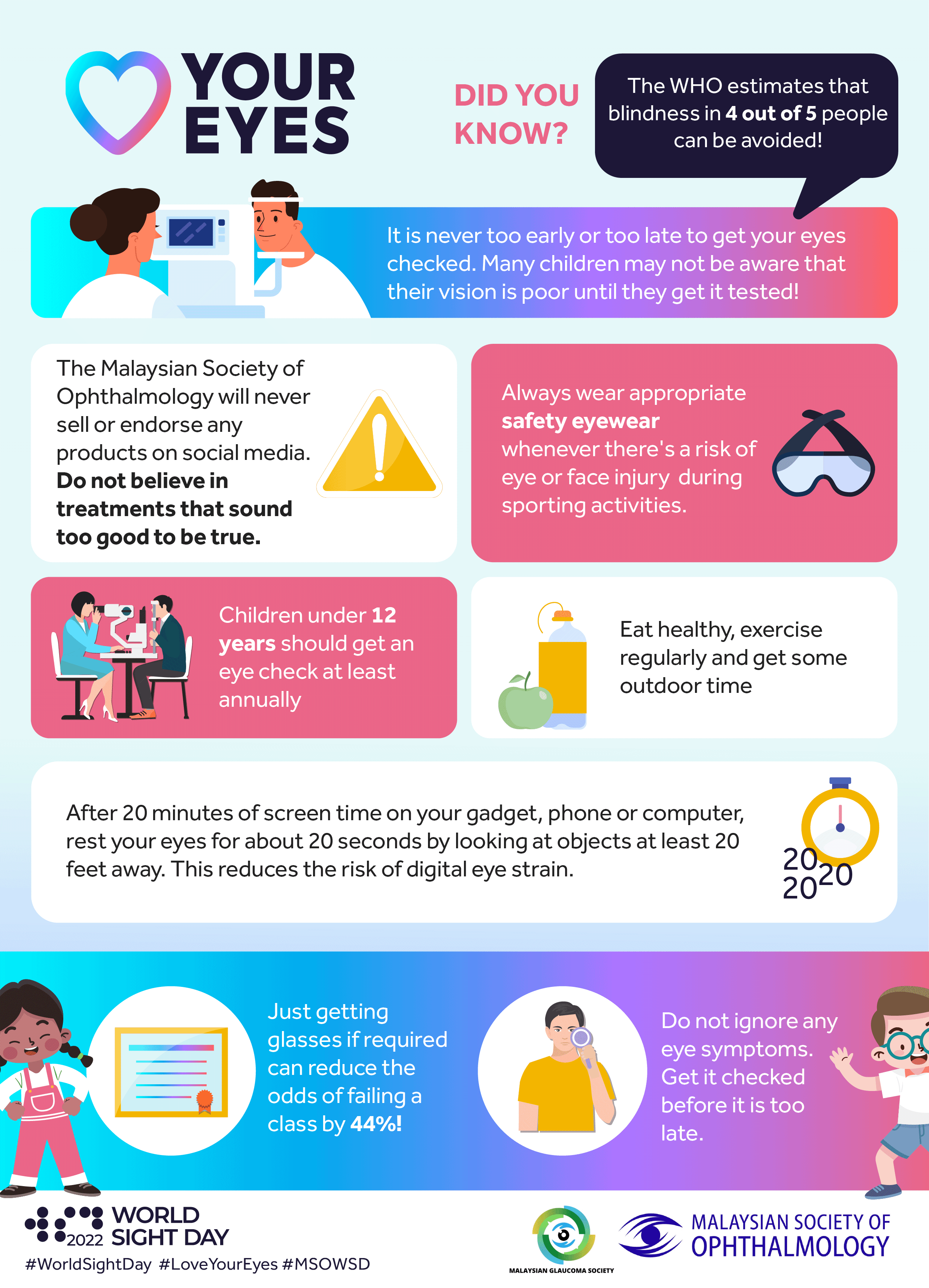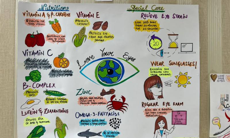 - Preparation of educational infographic posters that catered to both adults’ and children’s eye health. These posters were circulated among their members, and on the social media platform to be disseminated to as many people as possible.